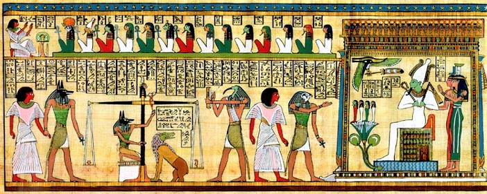- Maat: Maat era la diosa de la justicia y el equilibrio cósmico. Su pluma de la verdad se colocaba en una bandeja de la balanza durante el juicio. Se creía que el corazón del difunto debía ser más ligero que la pluma de Maat para demostrar su rectitud moral.
